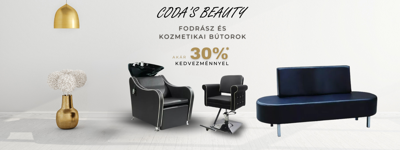 Coda kozmetika, fodrász és barber bútorok, szalonberendezések akár 30% kedvezménnyel.